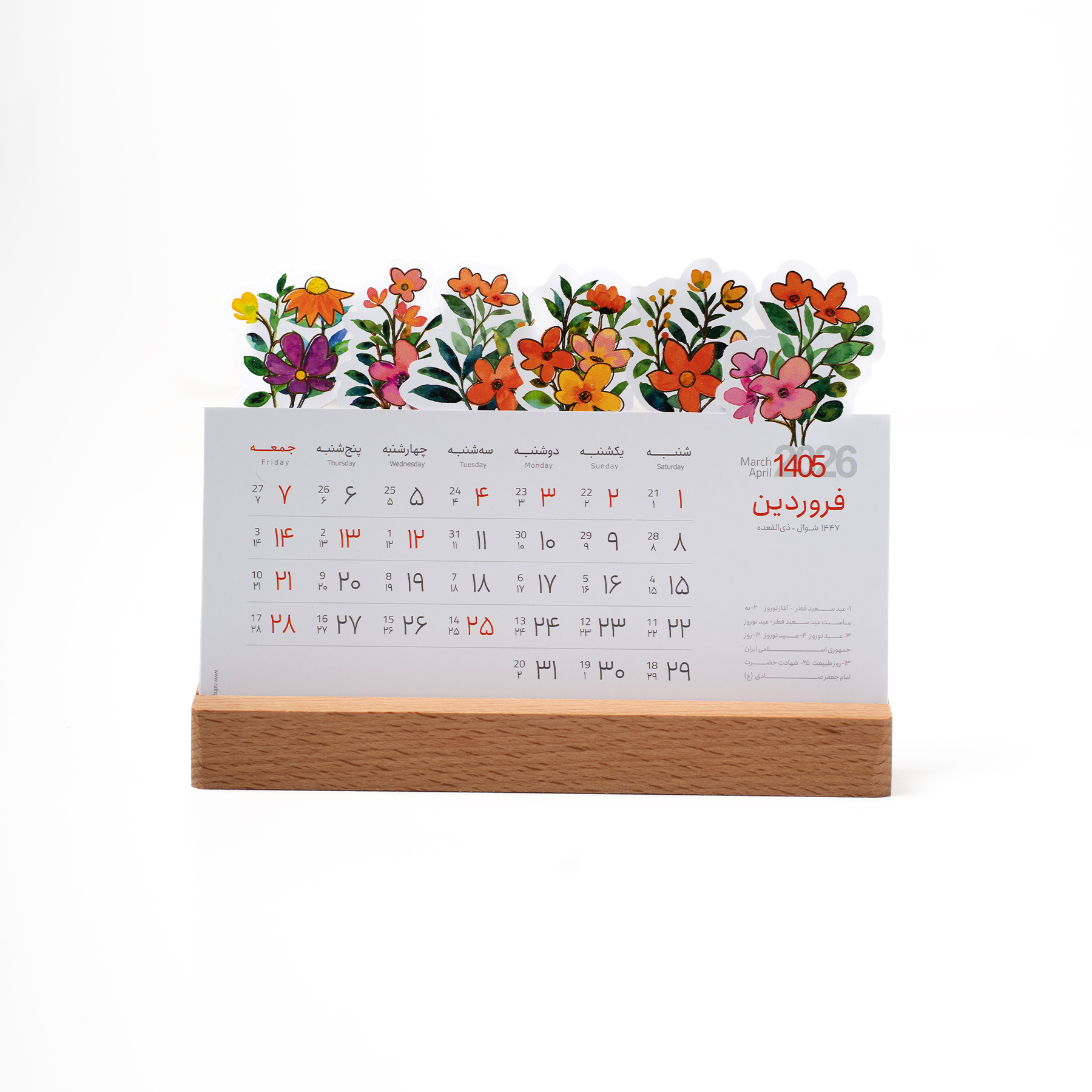 تقویم رومیزی گلبرگ با قطع ۱۲ × ۱۷ سانتیمتر طراحی شده و ظاهری جمعوجور و کاربردی دارد. پایهی این تقویم از چوب راش وارداتی ساخته شده که استحکام، دوام و زیبایی طبیعی چوب را به محصول میبخشد. صفحات تقویم به صورت ماهشمار تنظیم شدهاند و ترکیب چوب راش با طراحی ساده و خوشنفسِ تقویم، آن را به گزینهای شیک و ماندگار برای میز کار یا خانه تبدیل میکند.