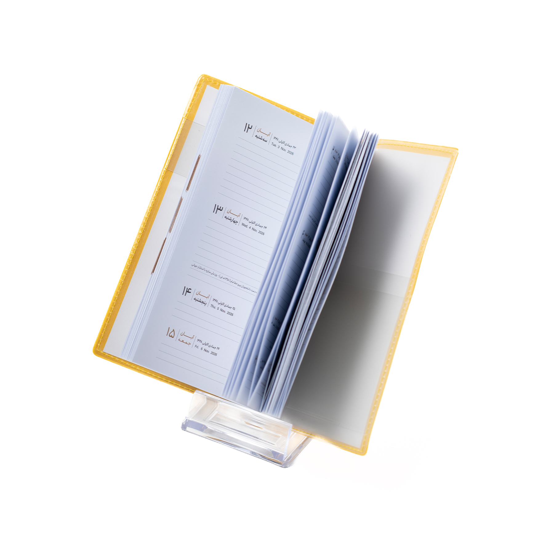 سررسید کارا سال 1405 با طراحی ساده و کاربردی خود، گزینهای مناسب برای افرادی است که بهدنبال یک سررسید سبک، خوشدست و قابلحمل هستند. این محصول در قطع ۱۰×۱۶.۵ سانتیمتر تولید شده؛ اندازهای کوچک و کارآمد که بهراحتی در کیف، کوله یا حتی جیب بزرگ قرار میگیرد. صفحات داخلی بهصورت هفته در دو صفحه طراحی شدهاند و همراه با بخش ارگنایزر ارائه میشوند. این مدل امکان برنامهریزی دقیق هفتگی، ثبت کارها و یادداشتهای مهم را بهصورت منظم فراهم میکند. کاغذ استفادهشده در این سررسید از نوع تحریر ۷۰ گرم است که نوشتن روان و خوانا را تضمین میکند. جلد محصول از PVC وارداتی ساخته شده که در برابر خطوخش، رطوبت و استفاده مداوم مقاوم است.صحافی چسب گرم، ظاهر یکپارچه و مرتب سررسید را حفظ میکند و دوام موردنیاز برای استفاده روزانه را فراهم میسازد.
