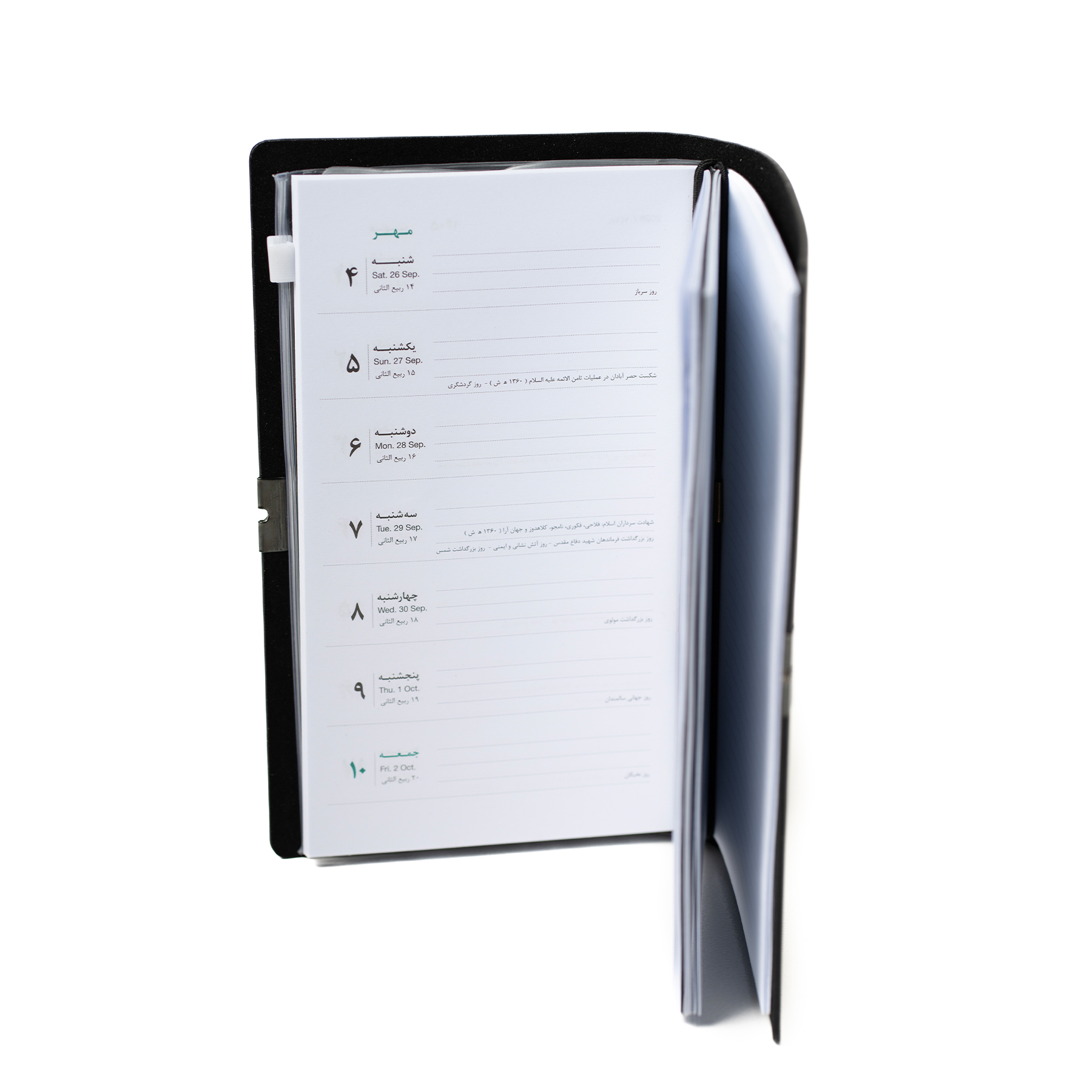 سررسید دوقلو پویا سال 1405 یک گزینه جمعوجور، کاربردی و مناسب برای استفاده روزمره است. این سررسید با قطع 9 × 19 سانتیمتر طراحی شده و بهراحتی در کیفهای اداری، کیف دستی و حتی جیب کت قرار میگیرد. داخلی سررسید از کاغذ تحریر 70 گرم سفید تهیه شده که نوشتن با انواع خودکار و رواننویس را بدون نفوذ جوهر و پخش شدن ممکن میسازد. نوع صحافی منگنهای باعث سبکتر شدن سررسید و ورقزدن آسان آن شده است. جلد محصول از چرم مصنوعی ساخته شده که ظاهر رسمی، شیک و درعینحال بادوام به آن میبخشد. سررسید پویا بهصورت هفتهشمار همراه با صفحات یادداشت طراحی شده و فضای کافی برای برنامهریزی هفتگی و ثبت نکات، کارها و یادداشتهای روزانه را فراهم میکند. این مدل با جلد مشکی تکرنگ عرضه میشود و انتخابی مناسب برای سازمانها و افرادی است که به دنبال یک سررسید سبک، منظم و اقتصادی برای سال جدید هستند.