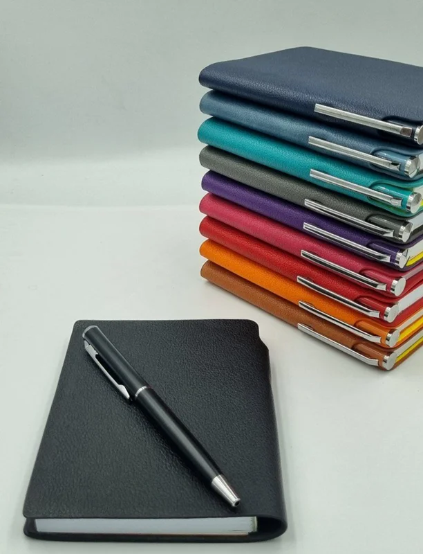 سایز این کار 8 * 10 سانتیمتر میباشد و با خودکار همرنگ دفترچه تقدیم میشود.