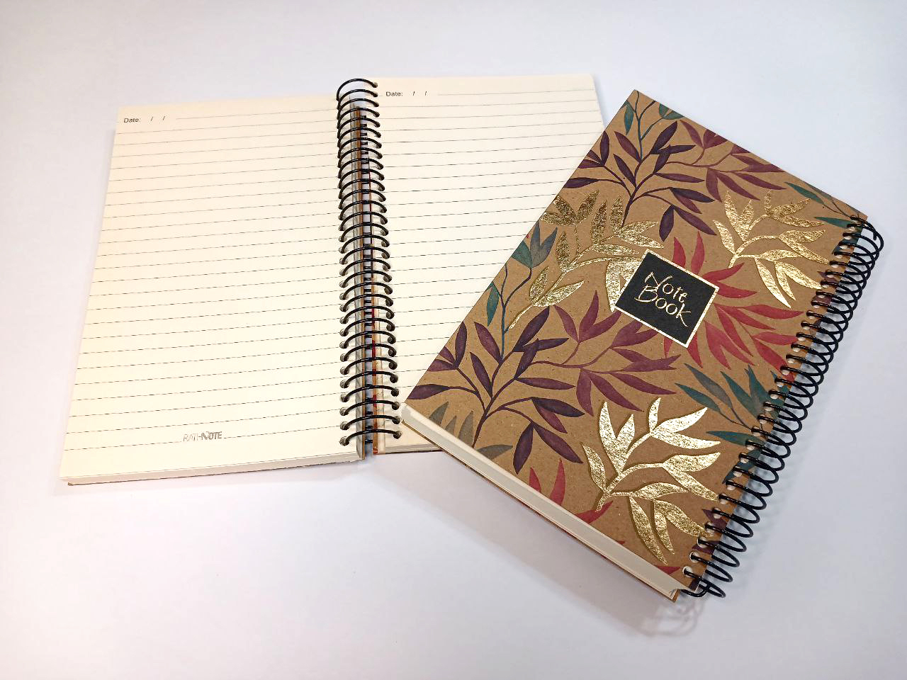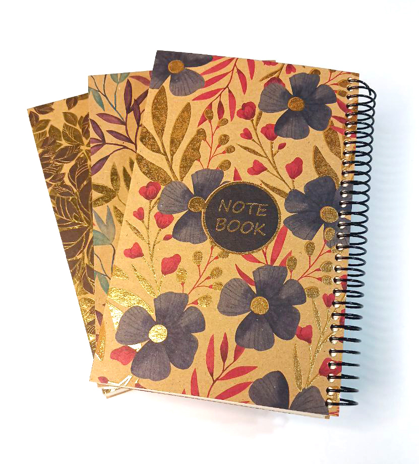 دفتر یادداشت140برگ/ نوع کاغذ: بالکی نروژی/ جلد: کرافت طلاکوبی شده/ قطع: 20 * 12.5/ نوع صحافی: فنری