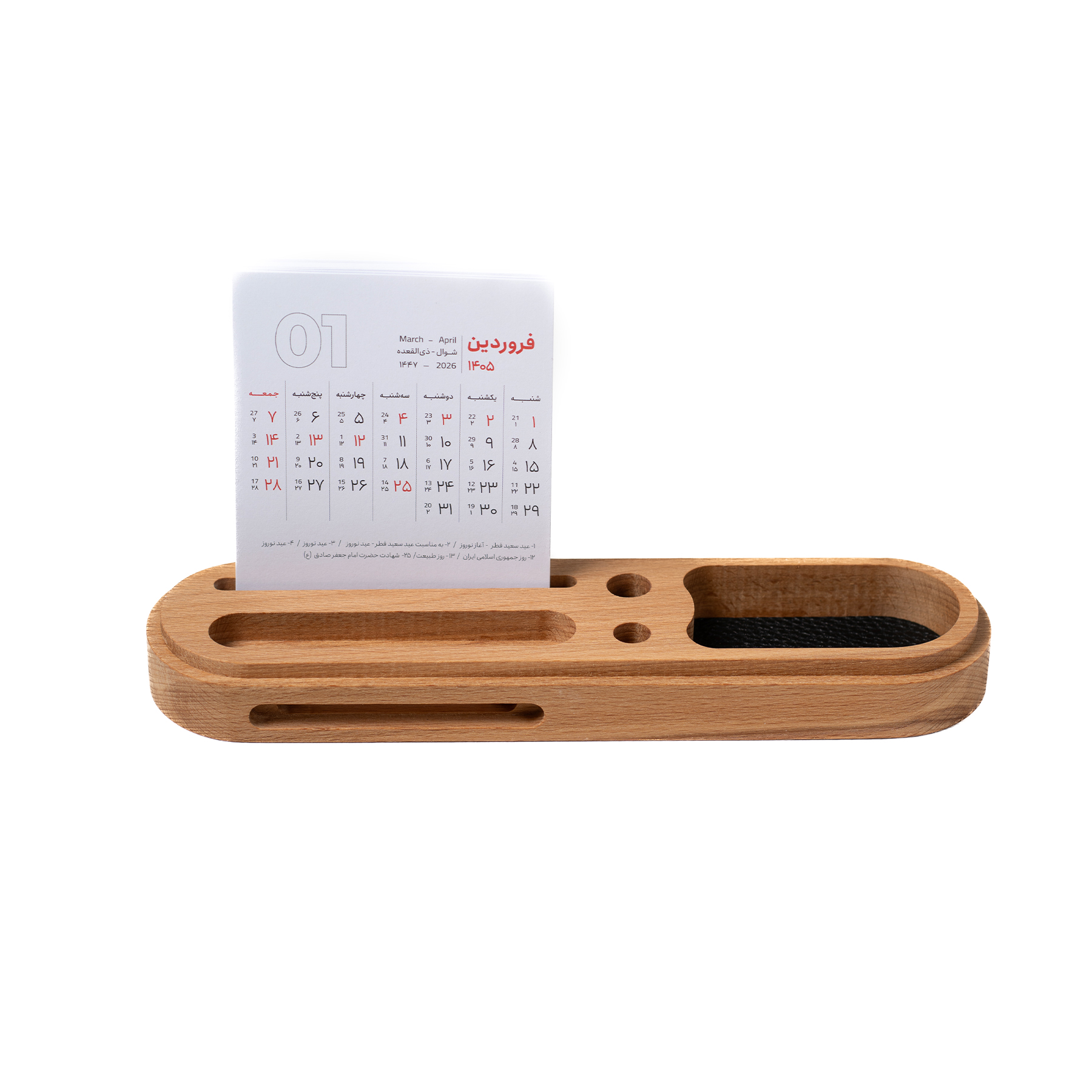 تقویم رومیزی سرو با قطع ۵ × ۲۲ سانتیمتر طراحی شده و علاوه بر نمایش تاریخ، امکانات کاربردی دیگری نیز ارائه میدهد. پایهی تقویم از چوب راش وارداتی ساخته شده و به همراه نگهدارنده موبایل و اسپیکر آکوستیک ارائه میشود، که تجربهای مدرن و چندمنظوره برای میز کار فراهم میکند. صفحات داخلی تقویم به صورت ماهشمار طراحی شدهاند و ترکیب چوب طبیعی با امکانات جانبی، این محصول را به گزینهای جذاب و کاربردی برای خانه و محل کار تبدیل کرده است.